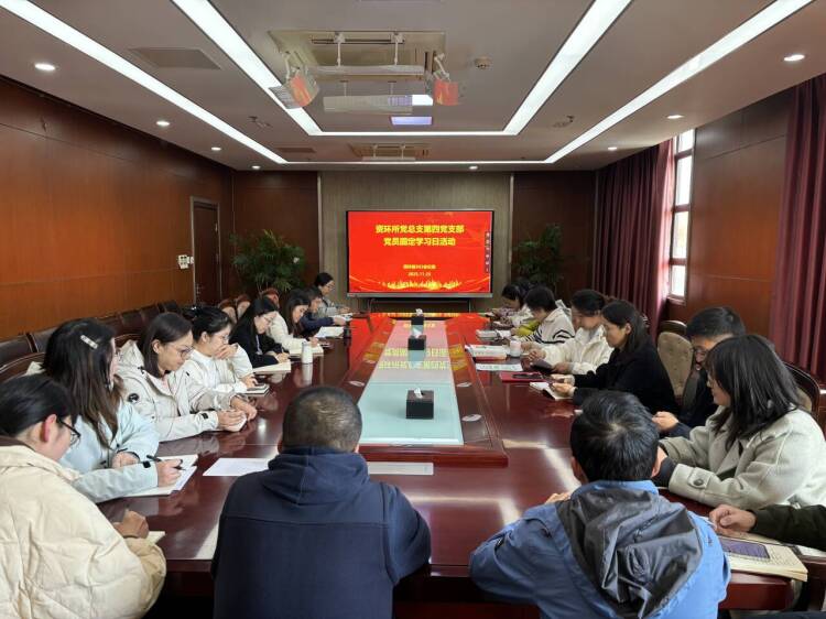 11月25日,资环所党总支第四党支部开展党员固定学习日活动,传达学习习近平总书记在党的二十届四中全会上的重要讲话精神,学习《中共中央关于制定国民经济和社会发展第十五个五年规划的建议》和习近平总书记关于《建议》的说明等内容。会议由党支部书记靳红梅主持,支部全体党员参加,编外职工党员和研究生党员列席会议。