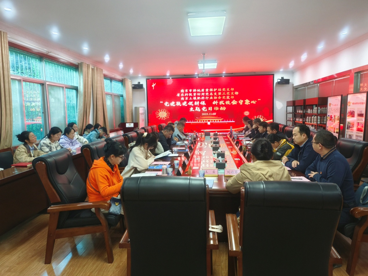 11月10日,资环所党总支第三党支部联合南京市耕地质量保护站党支部、南京土壤肥料行业协会党支部开展“党建联建促耕保 科农技企守廉心”主题党日活动。南京市耕保站站长、党支部书记刘胜环,南京土壤肥料行业协会党支部书记梁晓辉,资环所党总支副书记聂亚锋、支部书记侯朋福等30余人参加活动。