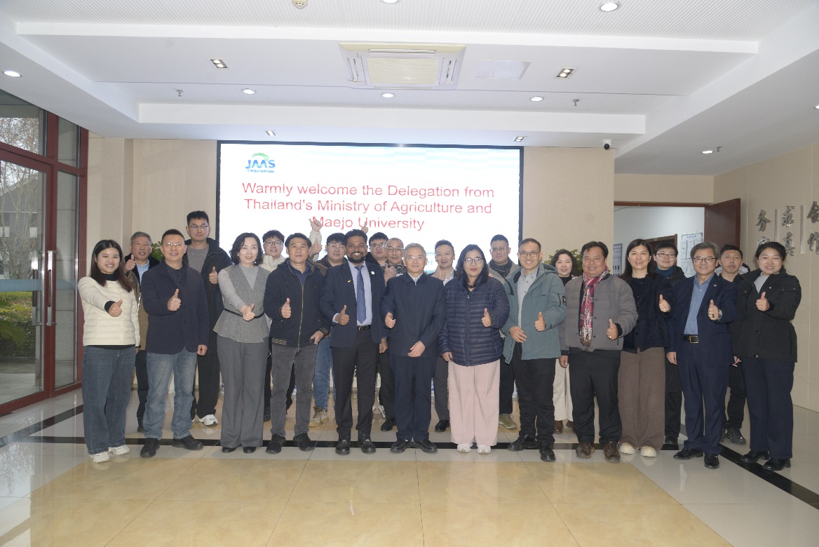 泰国农业部水稻司、泰国梅州大学代表团于2026年1月26日来我院农业资源与环境研究所进行了友好访问和交流,双方围绕共建“中泰低碳农业国际科技联合创新中心”进行了深入务实的商讨,并达成重要共识。江苏省农科院副院长孙洪武、农业厅对外交流处主任张劲博、国合处副处长庄丽娜、泰国农业部水稻司Orathai Jaituy处长、梅州大学国际学院院长Rapeephun Dangtungee等相关人员出席了会议,资环所副所长高岩主持了会议。