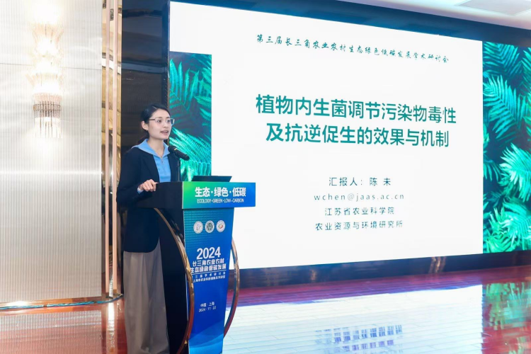 会议期间,与会人员围绕农业农村生态绿色低碳发展话题,从生物炭利用、有机(类)肥料制造与应用、土壤污染及水污染的生态修复、面源污染防控等方面进行了研讨。马艳主持分阶段大会报告,资环所土壤改良与功能肥料创新团队马啸驰副研究员、土壤污染修复创新团队陈未副研究员分别作题为《有机类肥料应用技术及效应研究》、《植物内生菌调节污染物毒性及抗逆促生的效果与机制》的报告。