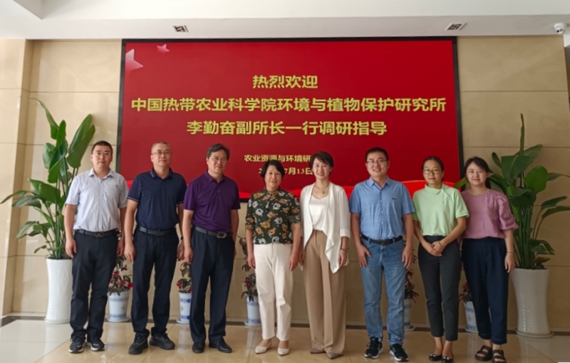 7月13日,中国热带农业科学院环境与植物保护研究所副所长、党委副书记李勤奋一行4人来资环所调研交流,所长马艳主持接待,党总支书记姚建中参加接待。