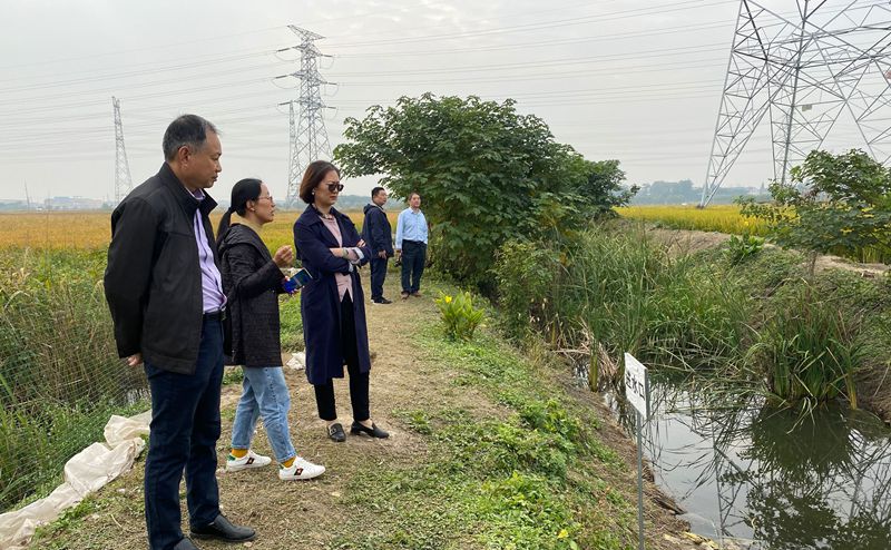 课题主持人薛利红研究员先向专家组及参会人员介绍了课题的基本情况、示范区的设计思路、示范工程布局、示范应用的技术和整体运行效果。专家组一行考察观摩了化肥源头减量技术示范田以及农田排水的多重拦截净化技术示范工程,包括促沉池、生态拦截沟渠、生态调蓄净化塘等。之后在示范区随机抽取了1块对照田以及4块技术示范田,按照农业农村部《全国粮食高产创建测产验收办法(试行)》进行了实割测产。测产结果显示,在该区示范的新型缓控释肥深施技术、减氮控磷技术、叶色诊断施肥技术在比对照田块减肥25%的情况下,依然取得了增产的效果;尤其是示范的缓混肥一次性施肥技术,比农户田块亩增产88公斤,增幅13%。专家组和技术用户一致认为,课题组集成示范的这些技术简便好用,减肥节工还能增产,建议加大示范推广力度。