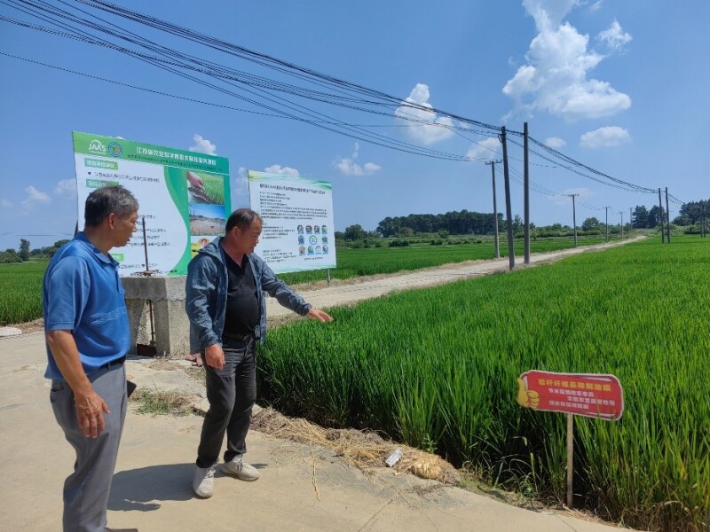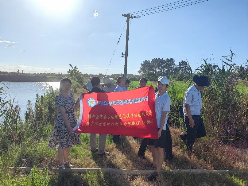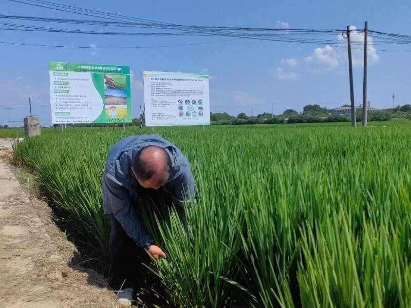 数字赋能技术传播,科技服务直通田间。近日,在高温炙烤的水稻拔节孕穗关键期,由江苏省农业科学院农业资源与环境研究所实施的2025年度亚夫科技服务项目“秸秆基质块水稻绿色低碳种植技术成果数字化宣传材料制作与传播(KF(25)3006)”负责人孙恩惠副研究员等专家以"数字技术+精准指导"双轮驱动,多次深入南京市高淳区东坝街道示范田,开展秸秆基质块水稻育秧协同机械覆膜栽培技术专项服务,通过数字化手段赋能技术传播,助力种植户科学应对高温挑战,推动江苏稻作绿色低碳转型。