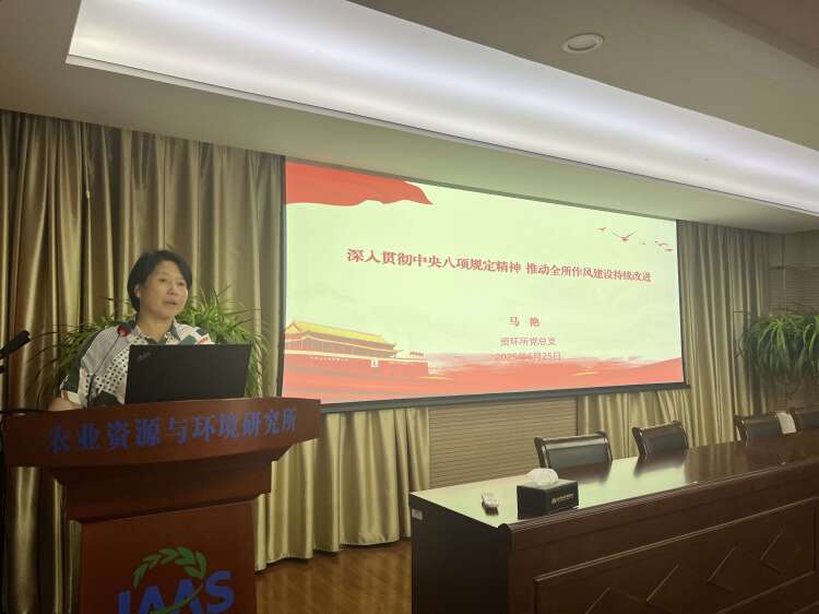 6月25日,资环所党总支组织召开党员职工大会,深入贯彻中央八项规定精神,推动全所作风建设持续改进。党总支书记马艳主持会议并讲党课,全体党员职工120余人参加会议。