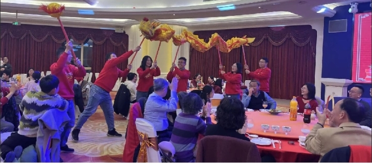 所分工会还组织全体职工开展掼蛋比赛和联欢会活动。大家欢聚一堂,各个团队精心准备的节目轮番登场,有舞龙腾飞、歌舞翩翩、二胡独奏、三句半、大合唱等,形式多样、精彩纷呈、氛围浓厚,生动展现了新时代资环人朝气蓬勃、锐意进取、担当作为、昂扬向上的精神风貌。