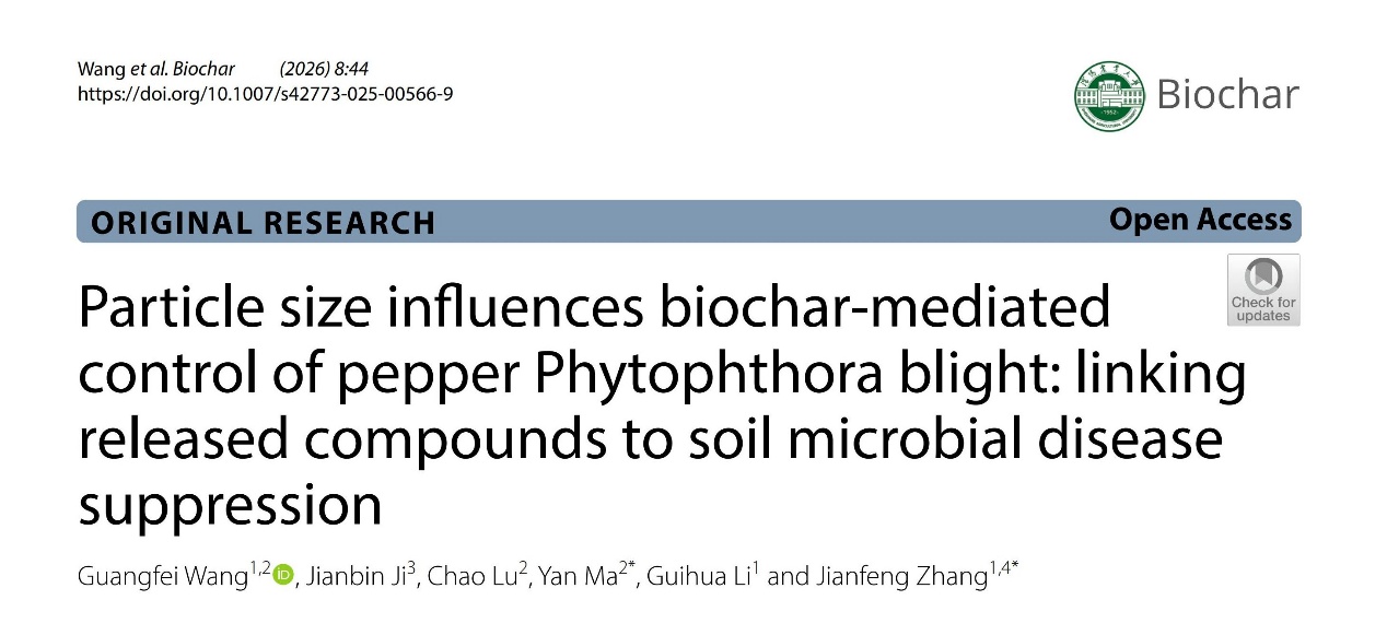 近日,资环所土壤改良与功能肥料创新团队在国际知名期刊《Biochar》(中科院一区Top,IF:13.5)上发表了研究论文“Particle size influences biochar-mediated control of pepper Phytophthora blight: linking released compounds to soil microbial disease suppression”。针对集约化种植土壤微生物学性状恶化、土传病害发生普遍发生和防治等难题,研究团队系统探究了生物炭这一典型土壤改良剂在重构根际微生物区系、提升土壤微生物抑病性的时效性规律,为开发靶向炭基土壤改良产品提供了理论支撑。